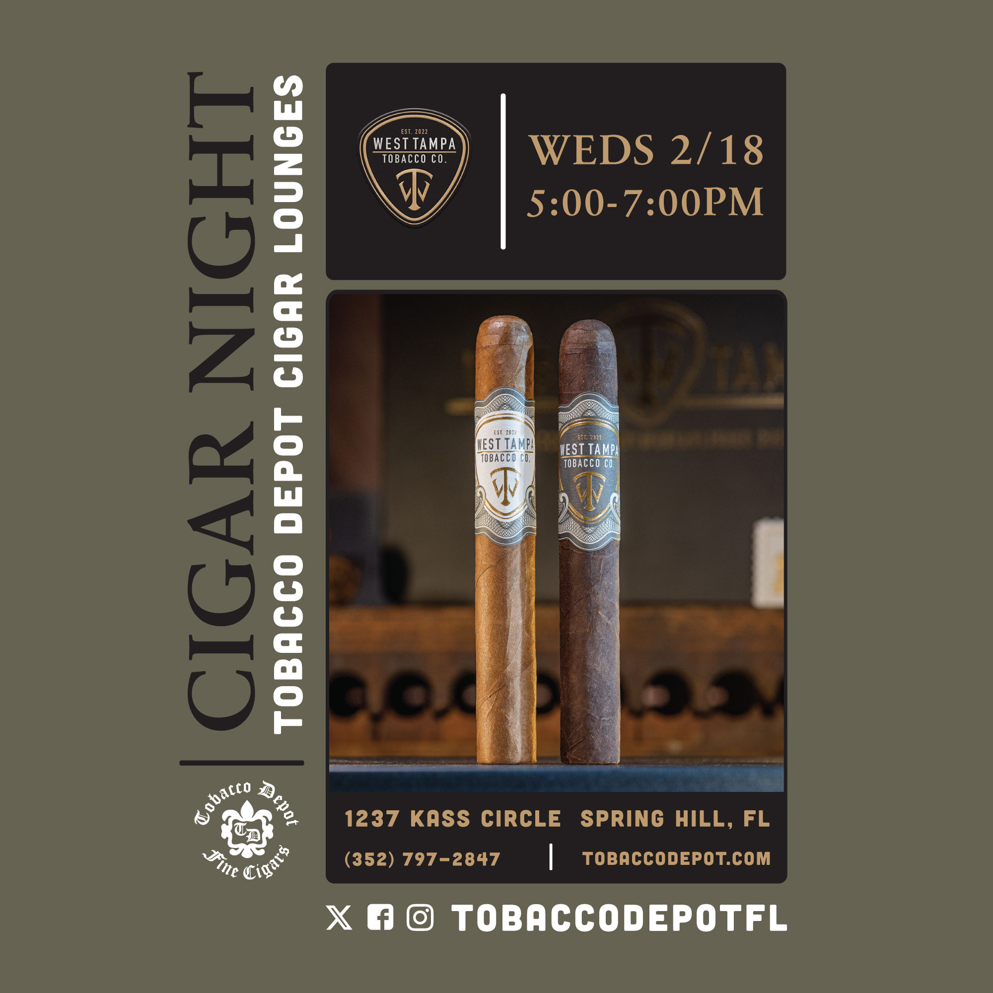 Join us at Tobacco Depot Spring Hill on Wednesday, February 18th from 5–7 PM for a West Tampa Tobacco Cigar Event.